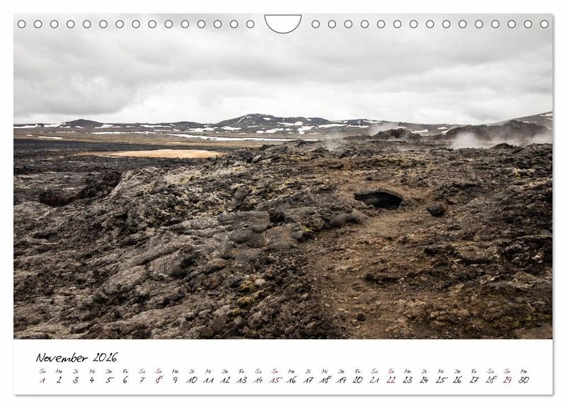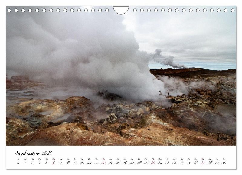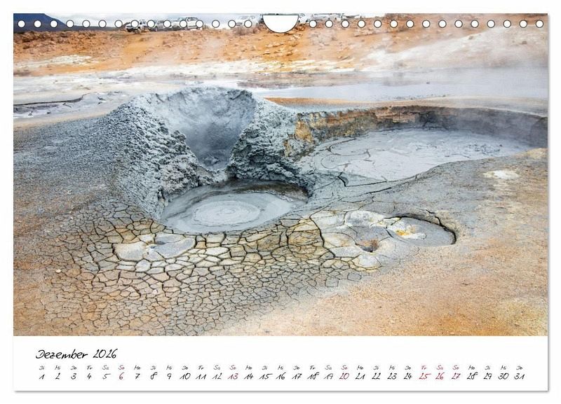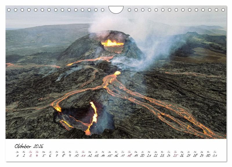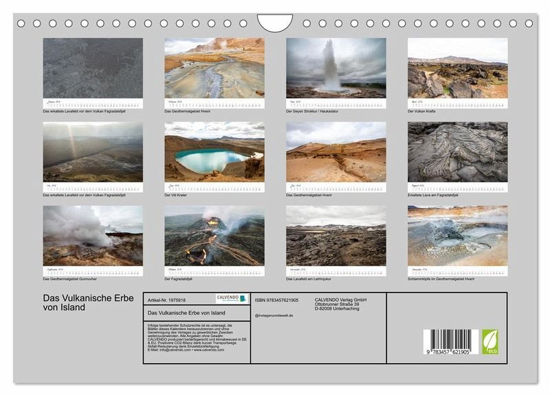 Die Insel Island entstand vor wenigen Millionen Jahren aufgrund von vulkanischen Prozessen im Untergrund. Und auch heute ist dieser Vulkanismus noch aktiv und begegnet einem überall auf der Insel. Aktive Vulkane wie der Fagradalsfjall im Süden Islands spucken Lava und in den Geothermalgebieten von Haukadalur und Hverir brodelt und dampft es aus der Erde. An kaum einem anderen Ort, kann man der feurigen Kraft unseres Planeten s nah kommen wie auf Island. Mit diesem Kalender begleitet sie die Kraft der Vulkane von Island durch das ganze Jahr.
