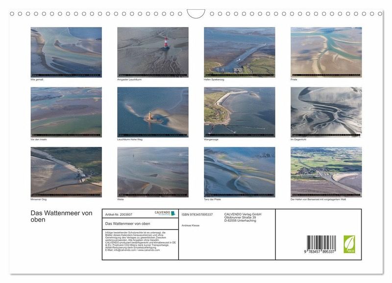 QUALITÄT - Hochwertiger Fotokalender mit 12 wunderschönen Motiven auf lichtbeständigem Bilderdruckpapier, robuste Spiralbindung mit Aufhängebügel.NACHHALTIG - deutliche Abfallreduzierung durch bedarfsgerechte Einzelstückfertigung, umweltfreundliches FSC-zertifiziertes Papier, Produktion in Deutschland, klimabewusste Logistik.PERFEKTES GESCHENK - Kalender für Freunde und Familie, für Kinder und Erwachsene, jung und alt, zu Weihnachten, Geburtstag oder zwischendurch.VIELFALT - Bildkalender in verschiedenen Formaten, z.B. DIN A5, DIN A4, DIN A3 sowie DIN A2. Ob Naturmotiv, Gemälde oder Fotos, ideal für ein persönliches Wohlfühlambiente.Bilder vom ost-friesischen Wattenmeer aus der Vogelperspektive. von Autor(in): Andreas Klesse