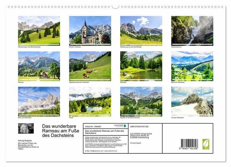PREMIUM-LINIE - Brillanter Fotokalender mit 12 wunderschönen Motiven, Kunstdruck in Hochglanz in Museumsqualität.QUALITÄT - edle Materialien, stabile Rückwand mit 2 innovativen Einstecktaschen für eine optimale Präsentation an der Wand.NACHHALTIG - deutliche Abfallreduzierung durch bedarfsgerechte Einzelstückfertigung, umweltfreundliches FSC-zertifiziertes Papier, Produktion in Deutschland, klimabewusste Logistik.PERFEKTES GESCHENK - Kalender für Freunde und Familie, für Kinder und Erwachsene, jung und alt, zu Weihnachten, Geburtstag oder zwischendurch.Das wunderbare Almengebiet Ramsau am Fuße des imposanten Dachsteins bietet viele Rundwandermöglichkeiten. von Autor(in): Solveig Rogalski