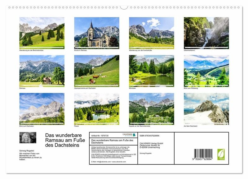 QUALITÄT - Hochwertiger Fotokalender mit 12 wunderschönen Motiven auf lichtbeständigem Bilderdruckpapier, robuste Spiralbindung mit Aufhängebügel.NACHHALTIG - deutliche Abfallreduzierung durch bedarfsgerechte Einzelstückfertigung, umweltfreundliches FSC-zertifiziertes Papier, Produktion in Deutschland, klimabewusste Logistik.PERFEKTES GESCHENK - Kalender für Freunde und Familie, für Kinder und Erwachsene, jung und alt, zu Weihnachten, Geburtstag oder zwischendurch.VIELFALT - Bildkalender in verschiedenen Formaten, z.B. DIN A5, DIN A4, DIN A3 sowie DIN A2. Ob Naturmotiv, Gemälde oder Fotos, ideal für ein persönliches Wohlfühlambiente.Das wunderbare Almengebiet Ramsau am Fuße des imposanten Dachsteins bietet viele Rundwandermöglichkeiten. von Autor(in): Solveig Rogalski