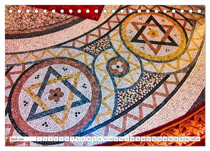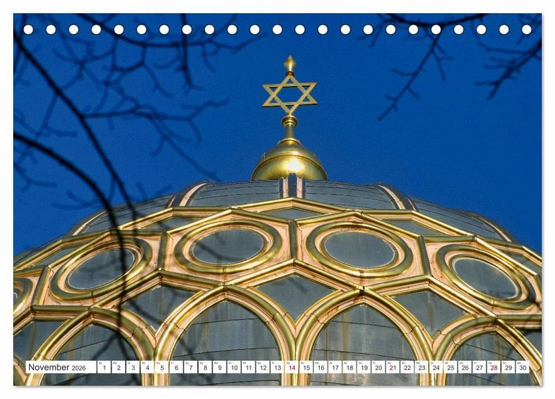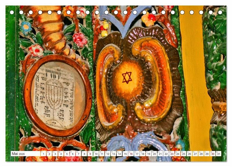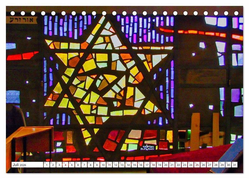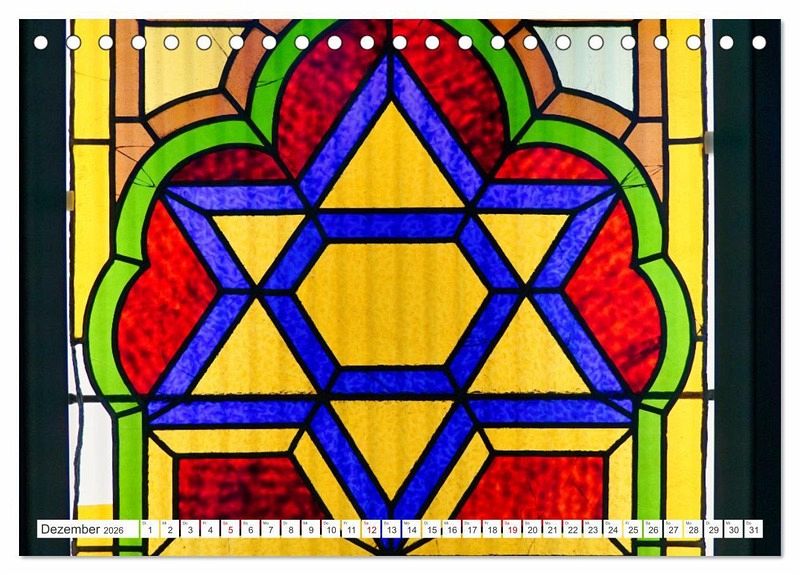 Der Davidstern heißt auf Hebräisch Magen David, Davidschild. Schon in der Antike war er verbreitet. Als Symbol des Judentums findet er seit dem 19. Jahrhundert weite Verbreitung. Unsere Kalenderblätter zeigen moderne, historische und gegenwärtige Beispiele in Deutschland, Europa, Israel und der USA.