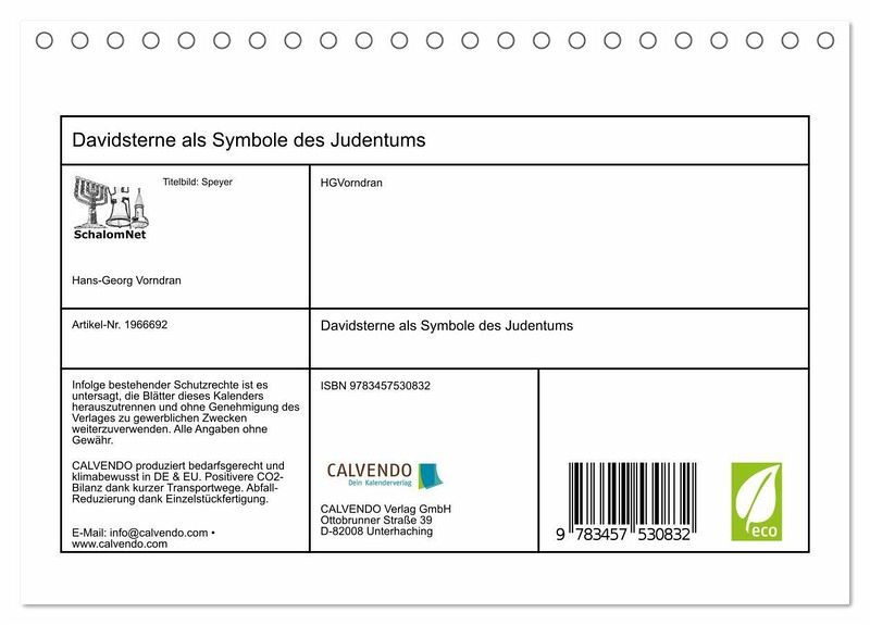 QUALITÄT - Hochwertiger Fotokalender mit 12 wunderschönen Motiven auf lichtbeständigem Bilderdruckpapier, robuste Spiralbindung.NACHHALTIG - deutliche Abfallreduzierung durch bedarfsgerechte Einzelstückfertigung, umweltfreundliches FSC-zertifiziertes Papier, Produktion in Deutschland, klimabewusste Logistik.PERFEKTES GESCHENK - Kalender für Freunde und Familie, für Kinder und Erwachsene, jung und alt, zu Weihnachten, Geburtstag oder zwischendurch.VIELFALT - Bildkalender in verschiedenen Formaten, z.B. DIN A5, DIN A4, DIN A3 sowie DIN A2. Ob Naturmotiv, Gemälde oder Fotos, ideal für ein persönliches Wohlfühlambiente.Der Davidstern gilt als Symbol des Judentums. Gezeigt werden moderne, historische und gegenwärtige Beispiele. von Autor(in): Hans-Georg Vorndran