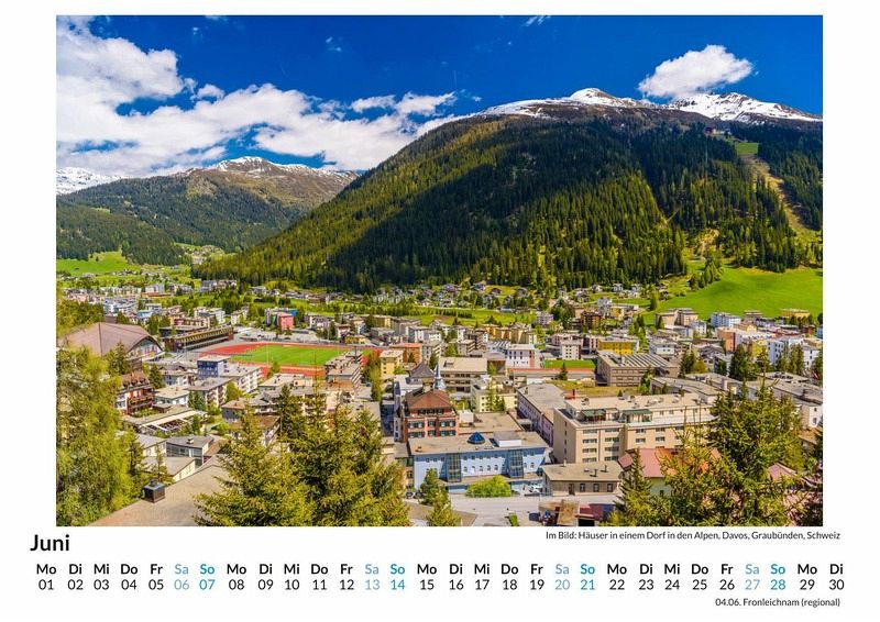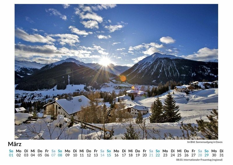 Entdecken Sie die atemberaubende Schönheit von Davos mit unserem exklusiven Wandkalender! Lassen Sie sich Monat für Monat von 12 sorgfältig ausgewählten Motiven dieser malerischen Schweizer Alpenstadt verzaubern. Ob schneebedeckte Gipfel, idyllische Bergseen oder charmante Dorfansichten - dieser Kalender bringt die Magie von Davos direkt in Ihr Zuhause. Gedruckt auf hochwertigem, lichtbeständigem Bilderdruckpapier, garantiert er brillante Farben und langanhaltende Freude. Nachhaltigkeit liegt uns am Herzen: Unsere Kalender werden in Deutschland auf FSC-zertifiziertem Papier produziert. Gönnen Sie sich oder Ihren Liebsten ein Stück Davos - perfekt als Geschenk oder für die eigene Wand! Hochwertig Erleben Sie ein Jahr voller Eleganz mit unserem Premium-Fotokalender. Jedes der 12 Motive ist auf hochwertigem, lichtbeständigem Bilderdruckpapier gedruckt, um die Lebendigkeit jedes Bildes zu bewahren. Die robuste Spiralbindung gewährleistet Langlebigkeit und einfache Handhabung. Nachhaltig Unser Engagement für die Umwelt spiegelt sich in jedem Exemplar wider. Durch die Produktion auf Abruf reduzieren wir signifikant unseren Abfall. Wir verwenden ausschließlich umweltfreundliches, FSC-zertifiziertes Papier. Stolz gefertigt in Deutschland, achten wir bei unserer Logistik auf Klimaschutz, um unseren ökologischen Fußabdruck zu minimieren. Das ideale Geschenk Dieser Kalender ist das perfekte Präsent für jeden Anlass - ob Weihnachten, Geburtstage oder einfach als liebevolle Aufmerksamkeit zwischendurch. Geeignet für Freunde, Familie, Kinder und Erwachsene gleichermaßen, bereichert er jedes Zuhause mit seiner Vielfalt und Schönheit, unabhängig vom Alter der Beschenkten.