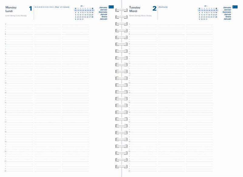 Quo Vadis - Terminkalender - Spiralbindung - 2026 - Day 2 Day Recycelt S - Tageskalender - Mehrsprachig - Respire - Blau - Jan/Dez - 21x29,7 cm Tageskalender, der 1 Tag pro Seite zeigt und viel Raum für Notizen lässt Der ideale Terminkalender für Geschäftsleute, Handwerker sowie Fachleute aus dem Bereich Gesundheit und Pflege: vielseitige tabellarische Übersicht, die sich an individuelle Bedürfnisse anpassen lässt, mit viertelstündlicher Terminübersicht von 7 bis 22 U 100 % Recyclingpapier, mit dem Blauer Engel ausgezeichnet, gelochte und herausnehmbare Ecken, um sich besser zurechtzufinden Fester Deckel, um das ganze Jahr zu halten Spiralheftung: gewährleistet ein flaches Aufliegen, sodass einfach Notizen erstellt werden können