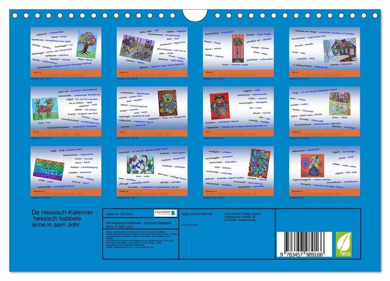 QUALITÄT - Hochwertiger Fotokalender mit 12 wunderschönen Motiven auf lichtbeständigem Bilderdruckpapier, robuste Spiralbindung mit Aufhängebügel.NACHHALTIG - deutliche Abfallreduzierung durch bedarfsgerechte Einzelstückfertigung, umweltfreundliches FSC-zertifiziertes Papier, Produktion in Deutschland, klimabewusste Logistik.PERFEKTES GESCHENK - Kalender für Freunde und Familie, für Kinder und Erwachsene, jung und alt, zu Weihnachten, Geburtstag oder zwischendurch.VIELFALT - Bildkalender in verschiedenen Formaten, z.B. DIN A5, DIN A4,DIN A3 sowie DIN A2. Ob Naturmotiv, Gemälde oder Fotos, ideal für ein persönliches Wohlfühlambiente.De Hessisch-Kalender, damit auch Sie dem hessischen Dialekt innerhalb eines Jahres mächtig werden von Autor(in): Ilona Ettingshausen