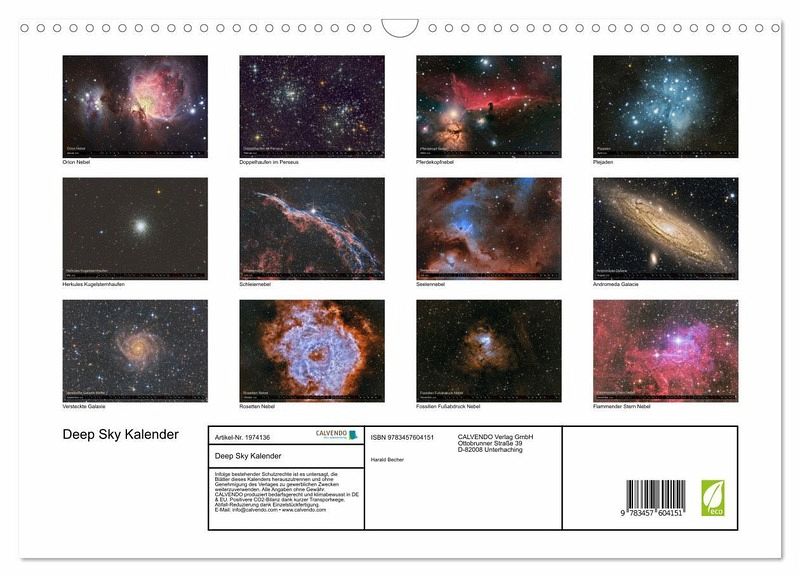 QUALITÄT - Hochwertiger Fotokalender mit 12 wunderschönen Motiven auf lichtbeständigem Bilderdruckpapier, robuste Spiralbindung mit Aufhängebügel.NACHHALTIG - deutliche Abfallreduzierung durch bedarfsgerechte Einzelstückfertigung, umweltfreundliches FSC-zertifiziertes Papier, Produktion in Deutschland, klimabewusste Logistik.PERFEKTES GESCHENK - Kalender für Freunde und Familie, für Kinder und Erwachsene, jung und alt, zu Weihnachten, Geburtstag oder zwischendurch.VIELFALT - Bildkalender in verschiedenen Formaten, z.B. DIN A5, DIN A4, DIN A3 sowie DIN A2. Ob Naturmotiv, Gemälde oder Fotos, ideal für ein persönliches Wohlfühlambiente.Kalender 2022 mit Motiven von Nebeln Galaxien und Sternhaufen von Autor(in): Deepskywatching