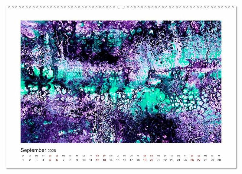 Dieser wunderschöne Kalender mit abstrakten Acrylic Pouring Werken zeigt jeden Monat ein einzigartiges Kunstwerk. Versinke in eine bunte abstrakte Welt. Lass dich jeden Monat inspirieren von der Farbenpracht. Lasse deiner Fantasie freien Lauf und gnieße die Magie der abstrakten Kunst.
