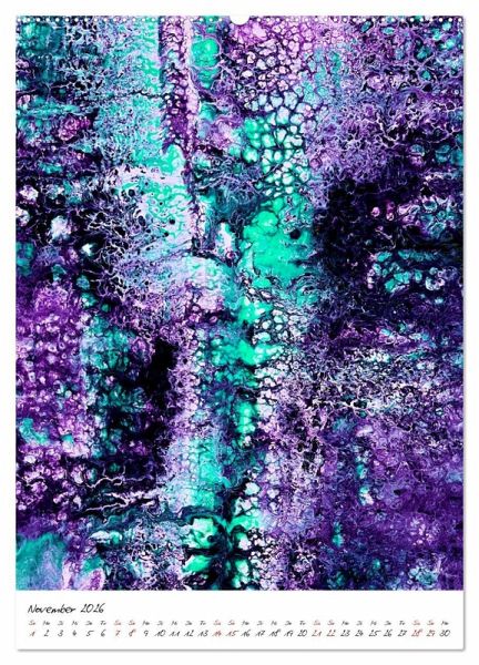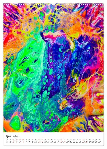 Dieser wunderschöne Kalender mit abstrakten Acrylic Pouring Werken zeigt jeden Monat ein einzigartiges farbenfrohes Kunstwerk. Versinke in eine bunte abstrakte Welt. Lass dich jeden Monat inspirieren von der Farbenpracht. Lasse deiner Fantasie freien Lauf und gnieße die Magie der abstrakten Kunst.