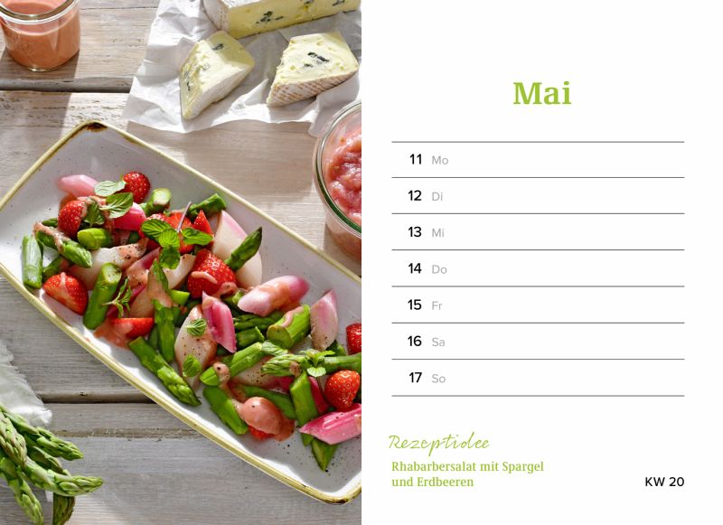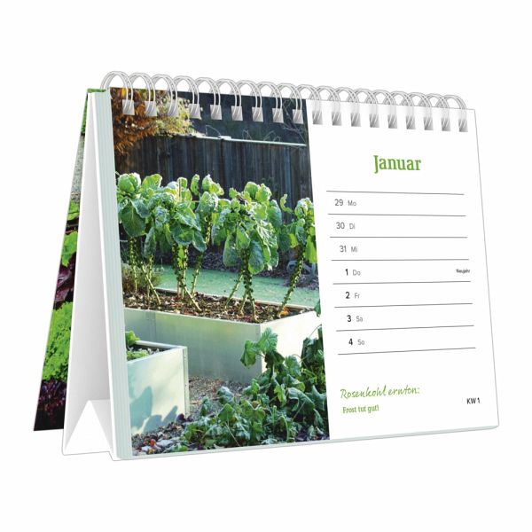 26 Profi-Tipps für Anbau & Pflege von Dr. Markus Philippen 27 Rezepte von Bettina Matthaei frisch, kreativ & alltagstauglich Übersicht zu Pflanz- und Erntezeiten im Jahresverlauf Wochenkalender mit 53 Blättern im praktischen Tischformat 23×17 cm Spiralbindung oben für einfaches Umblättern