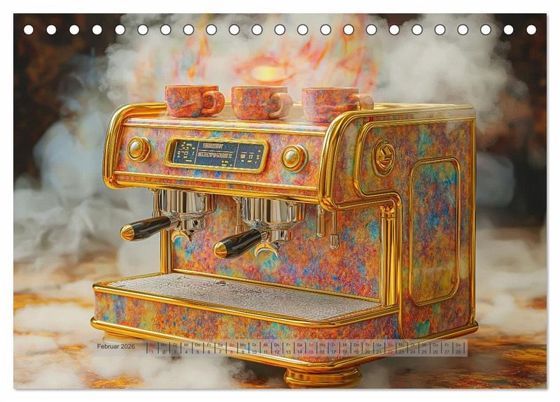 Entdecken Sie Kaffeemaschinen wie nie zuvor! Unser KI-generierter Kalender zeigt Ihnen jeden Monat faszinierende, surreale Interpretationen klassischer Kaffeemaschinen. Jedes Motiv ist ein einzigartiges Kunstwerk, in dem Funktionalität und Fantasie miteinander verschmelzen - von extravaganten Formen bis hin zu traumhaften Details. Diese Kalenderblätter nehmen Sie mit auf eine Reise durch skurrile Welten, in denen Kaffeegenuss neu interpretiert wird. Perfekt für Kunstliebhaber, Kaffeeenthusiasten und alle, die das Besondere suchen. Lassen Sie sich von diesen außergewöhnlichen Designs inspirieren und erleben Sie, wie Technik und Kunst zu einem wahren visuellen Erlebnis verschmelzen!