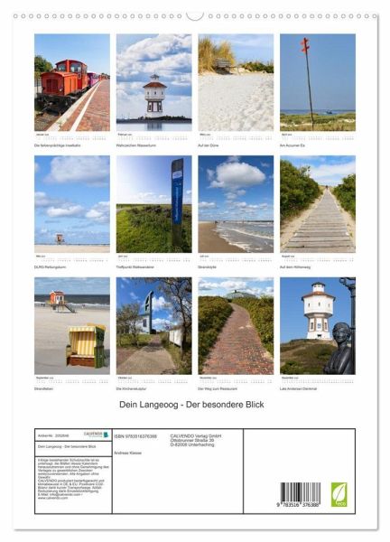 PREMIUM-LINIE - Brillanter Fotokalender mit 12 wunderschönen Motiven, Kunstdruck in Hochglanz in Museumsqualität.QUALITÄT - edle Materialien, stabile Rückwand mit 2 innovativen Einstecktaschen für eine optimale Präsentation an der Wand.NACHHALTIG - deutliche Abfallreduzierung durch bedarfsgerechte Einzelstückfertigung, umweltfreundliches FSC-zertifiziertes Papier, Produktion in Deutschland, klimabewusste Logistik.PERFEKTES GESCHENK - Kalender für Freunde und Familie, für Kinder und Erwachsene, jung und alt, zu Weihnachten, Geburtstag oder zwischendurch.Die Schönheiten Langeoogs in wunderschönen Bildern - zum Erinnern und Träumen. von Autor(in): Andreas Klesse