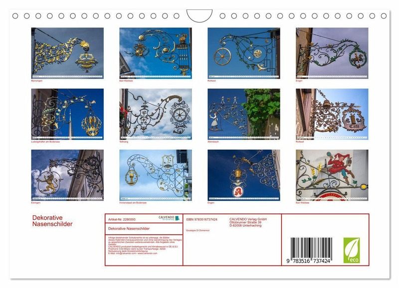 QUALITÄT - Hochwertiger Fotokalender mit 12 wunderschönen Motiven auf lichtbeständigem Bilderdruckpapier, robuste Spiralbindung mit Aufhängebügel.NACHHALTIG - deutliche Abfallreduzierung durch bedarfsgerechte Einzelstückfertigung, umweltfreundliches FSC-zertifiziertes Papier, Produktion in Deutschland, klimabewusste Logistik.PERFEKTES GESCHENK - Kalender für Freunde und Familie, für Kinder und Erwachsene, jung und alt, zu Weihnachten, Geburtstag oder zwischendurch.VIELFALT - Bildkalender in verschiedenen Formaten, z.B. DIN A5, DIN A4, DIN A3 sowie DIN A2. Ob Naturmotiv, Gemälde oder Fotos, ideal für ein persönliches Wohlfühlambiente.Das Nasenschild, auch als Auslegerschild bekannt, ist eine traditionelle Form der Werbung. von Autor(in): Giuseppe Di Domenico