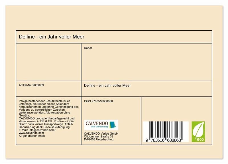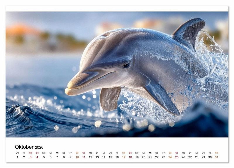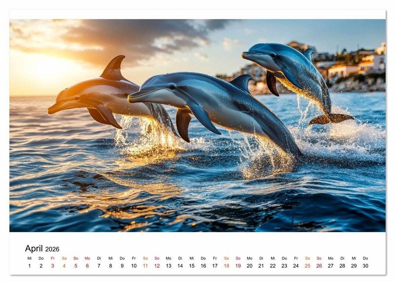 Entdecken Sie eine Welt voller Anmut, Freiheit und Lebensfreude mit atemberaubenden KI-generierten Bildern. Ob elegant aus den Wellen springend, pfeilschnell durchs Wasser gleitend oder sanft in der Tiefe schwebend - Delfine verzaubern mit ihrer Energie, ihrer Verspieltheit und ihrem natürlichen Charme. Mal allein, mal in vertrauter Zweisamkeit oder lebendig in Gruppen - dieser Kalender fängt die ganze Vielfalt ihres Lebensraums und ihres Wesens ein und erinnert daran, wie wertvoll und schützenswert unsere Ozeane sind. Ein perfektes Geschenk für alle, die das Meer lieben - und Delfine noch mehr.