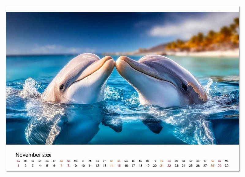 Entdecken Sie eine Welt voller Anmut, Freiheit und Lebensfreude mit atemberaubenden KI-generierten Bildern. Ob elegant aus den Wellen springend, pfeilschnell durchs Wasser gleitend oder sanft in der Tiefe schwebend - Delfine verzaubern mit ihrer Energie, ihrer Verspieltheit und ihrem natürlichen Charme. Mal allein, mal in vertrauter Zweisamkeit oder lebendig in Gruppen - dieser Kalender fängt die ganze Vielfalt ihres Lebensraums und ihres Wesens ein und erinnert daran, wie wertvoll und schützenswert unsere Ozeane sind. Ein perfektes Geschenk für alle, die das Meer lieben - und Delfine noch mehr.
