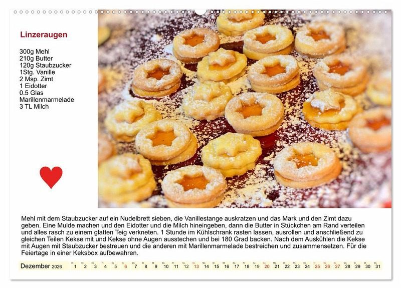 PREMIUM-LINIE - Brillanter Fotokalender mit 12 wunderschönen Motiven, Kunstdruck in Hochglanz in Museumsqualität.QUALITÄT - edle Materialien, stabile Rückwand mit 2 innovativen Einstecktaschen für eine optimale Präsentation an der Wand.NACHHALTIG - deutliche Abfallreduzierung durch bedarfsgerechte Einzelstückfertigung, umweltfreundliches FSC-zertifiziertes Papier, Produktion in Deutschland, klimabewusste Logistik.PERFEKTES GESCHENK - Kalender für Freunde und Familie, für Kinder und Erwachsene, jung und alt, zu Weihnachten, Geburtstag oder zwischendurch.Omas Backkunst! Ein Rezeptkalender mit den beliebten Süßspeisen aus Österreich von Autor(in): Rose Hurley