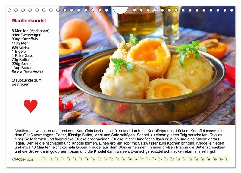 Österreich ist ein Mehlspeisenparadies. Wer liebt sie nicht, die Marillenknödel, den Kaiserschmarrn, die Sachertorte oder den Gugelhupf. Für jeden Geschmack findet sich die richtige Nachspeise und es macht Freude, diese leckeren Süßspeisen selbst zu backen. Dieser Kalender enthält zwölf tolle Rezepte zum nachmachen und genießen.