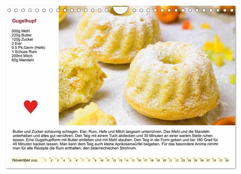 QUALITÄT - Hochwertiger Fotokalender mit 12 wunderschönen Motiven auf lichtbeständigem Bilderdruckpapier, robuste Spiralbindung mit Aufhängebügel.NACHHALTIG - deutliche Abfallreduzierung durch bedarfsgerechte Einzelstückfertigung, umweltfreundliches FSC-zertifiziertes Papier, Produktion in Deutschland, klimabewusste Logistik.PERFEKTES GESCHENK - Kalender für Freunde und Familie, für Kinder und Erwachsene, jung und alt, zu Weihnachten, Geburtstag oder zwischendurch.VIELFALT - Bildkalender in verschiedenen Formaten, z.B. DIN A5, DIN A4, DIN A3 sowie DIN A2. Ob Naturmotiv, Gemälde oder Fotos, ideal für ein persönliches Wohlfühlambiente.Omas Backkunst! Ein Rezeptkalender mitden beliebten Süßspeisen aus Österreich von Autor(in): Rose Hurley