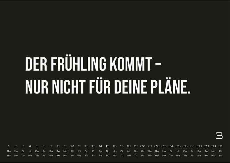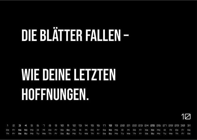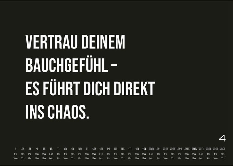 Starte jeden Monat mit einem Lächeln - oder eher einem verzweifelten Seufzer - mit unserem demotivierenden Wandkalender 2026. Dieser 12-monatige Kalender bringt jeden Monat eine neue, bittere Wahrheit ans Licht, perfekt für alle, die das Leben mit einem sarkastischen Augenzwinkern betrachten.Jeder Monat überrascht mit einem einzigartigen demotivierenden Spruch, der alltägliche Situationen auf humorvolle Weise hinterfragt. Ob im Büro, in der Küche oder im Wohnzimmer - dieser Kalender ist ein Hingucker für alle, die den Hype um ständige Selbstoptimierung satthaben. - Perfekt als Geschenk: Für Freunde, die ebenfalls genug vom ewigen "Motivations-Wahn" haben. - Hochwertige Materialien: Gedruckt auf 170g/m² Papier mit stabiler 850g/m² Rückwand, langlebig und stabil für das ganze Jahr. - Passend für jede Wand: In stilvollem, minimalistischen Design gehalten, das sich perfekt in jeden Raum einfügt.Wandkalender 2026, demotivierende Sprüche, humorvoller Kalender, zynischer Kalender, lustiger Wandkalender, Geschenkidee, Kalender fürs Büro, Sarkasmus, 12 Monate Kalender, Kalender für Alltagshumor.Hängen Sie diesen Kalender auf und genießen Sie den bitteren Charme, der Ihnen zeigt, dass manchmal weniger Motivation einfach mehr ist.