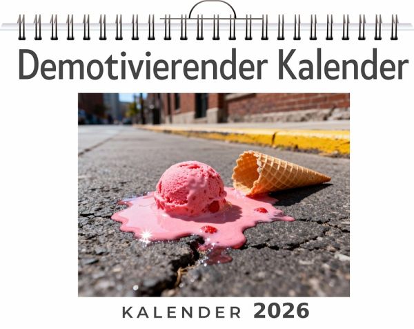 Schluss mit unaufhörlichem Optimismus und erzwungener Fröhlichkeit. Wo andere Kalender mit inspirierenden Zitaten glänzen, zelebriert dieser die kleinen und großen Niederlagen des Alltags. Er feiert die Schönheit des Scheiterns und die Poesie der Sinnlosigkeit in rein visueller Form. Dieser Kalender ist optimal geeignet: Für alle, die schwarzen Humor zu schätzen wissen und das Leben nicht immer ernst nehmen. Für Realisten, die von pauschalen Motivationssprüchen längst genug haben. Für Liebhaber des Absurden und Suchende nach einem wirklich originellen Geschenk. Jeder Monat präsentiert ein einzigartiges Bild, das eine stille Geschichte des Scheiterns erzählt. Von der Ameise, die mühsam einen Krümel direkt in den Abfluss befördert, über den Toaster, der das Brot nur auf einer Seite verbrennt, bis hin zu anderen Szenarien der Vergeblichkeit. Jedes dieser Motive wurde von einer kreativen Logik ohne menschliche Emotionen erdacht. Die Bilder sind keine Malereien, sondern fangen die Momente in ihrer klaren Darstellung ein. Ganz ohne Worte entfaltet sich die pure, unverfälschte Sinnlosigkeit. Was Sie erwarten können: Zwölf Monatsblätter mit visuell eindrücklichen Szenen des alltäglichen Kampfes. Ein praktischer Jahresplaner für das kommende Jahr ohne ablenkenden Text. Eine monatliche Dosis ehrlicher Perspektive auf die Unwägbarkeiten des Lebens. Der "Demotivierender Kalender" ist mehr als nur eine Sammlung von Daten. Er ist ein Statement gegen den Druck, ständig erfolgreich sein zu müssen, und eine Einladung, auch die unperfekten Momente mit einem Augenzwinkern zu betrachten. Er ist ein Begleiter, der daran erinnert, dass es vollkommen in Ordnung ist, nicht immer zu gewinnen. Erleben Sie die befreiende Wirkung des Scheiterns.