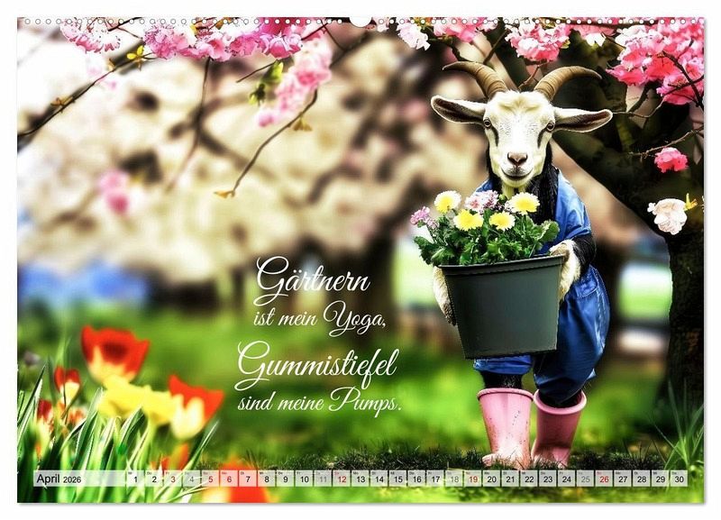 Den Bock zum Gärtner zu machen ist eine bekannte Redewendung. Die Autorin hat das wörtlich genommen und mit Hilfe von KI Ziegen in Gärtnerkleidung gesteckt und die Bilder mit witzigen Sprüchen versehen.