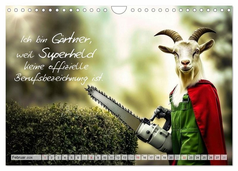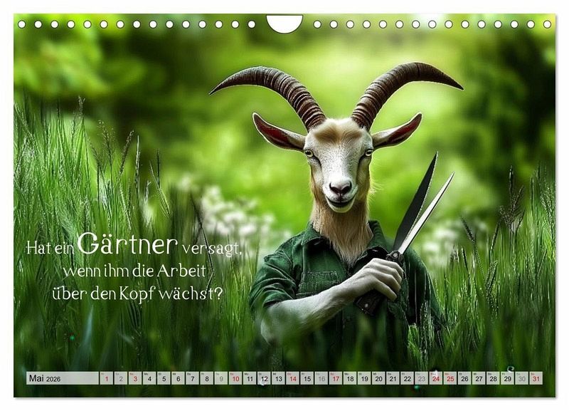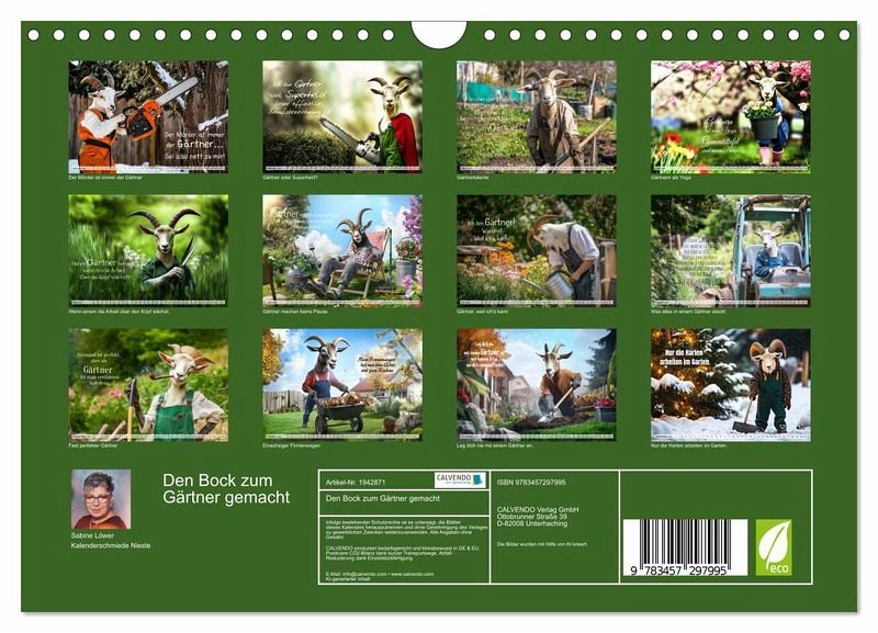 Den Bock zum Gärtner zu machen ist eine bekannte Redewendung. Die Autorin hat das wörtlich genommen und mit Hilfe von KI Ziegen in Gärtnerkleidung gesteckt und die Bilder mit witzigen Sprüchen versehen.