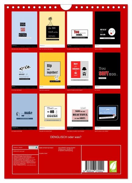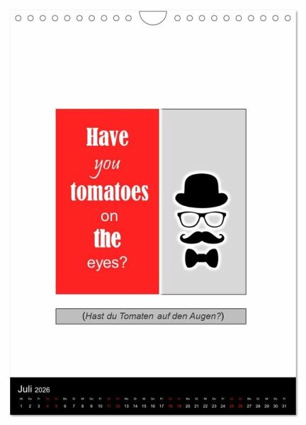 QUALITÄT - Hochwertiger Fotokalender mit 12 wunderschönen Motiven auf lichtbeständigem Bilderdruckpapier, robuste Spiralbindung mit Aufhängebügel.NACHHALTIG - deutliche Abfallreduzierung durch bedarfsgerechte Einzelstückfertigung, umweltfreundliches FSC-zertifiziertes Papier, Produktion in Deutschland, klimabewusste Logistik.PERFEKTES GESCHENK - Kalender für Freunde und Familie, für Kinder und Erwachsene, jung und alt, zu Weihnachten, Geburtstag oder zwischendurch.VIELFALT - Bildkalender in verschiedenen Formaten, z.B. DIN A5, DIN A4, DIN A3 sowie DIN A2. Ob Naturmotiv, Gemälde oder Fotos, ideal für ein persönliches Wohlfühlambiente.Ein TYPO-Kalender mit deutschen Redewendungen 1 : 1 ins Englische übersetzt ... von Autor(in): Angelika Keller