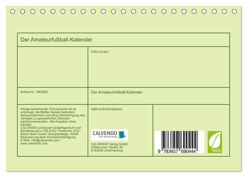 QUALITÄT - Hochwertiger Fotokalender mit 12 wunderschönen Motiven auf lichtbeständigem Bilderdruckpapier, robuste Spiralbindung.NACHHALTIG - deutliche Abfallreduzierung durch bedarfsgerechte Einzelstückfertigung, umweltfreundliches FSC-zertifiziertes Papier, Produktion in Deutschland, klimabewusste Logistik.PERFEKTES GESCHENK - Kalender für Freunde und Familie, für Kinder und Erwachsene, jung und alt, zu Weihnachten, Geburtstag oder zwischendurch.VIELFALT - Bildkalender in verschiedenen Formaten, z.B. DIN A5, DIN A4, DIN A3 sowie DIN A2. Ob Naturmotiv, Gemälde oder Fotos, ideal für ein persönliches Wohlfühlambiente.Amateurfußball von Autor(in): Philipp Wosnitza