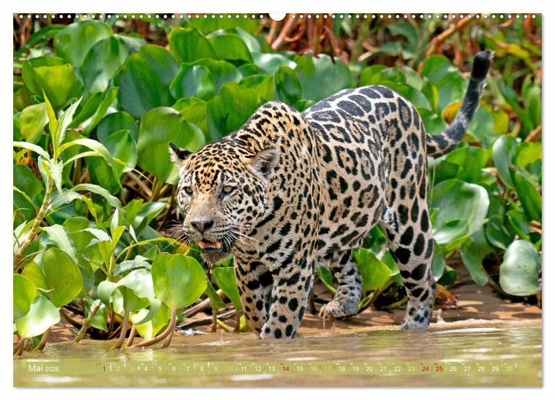 Mai: Jaguar (Panthera onca), in seinem Revier ist er der König der Raubtiere, denn er kann ebenso gut klettern wie schwimmen
