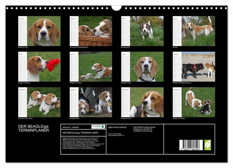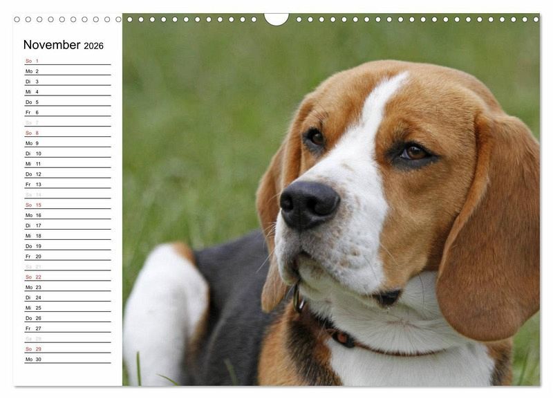 Der Beagle: Der robuste, kleine Kerl mit den rehbraunen Augen und den lustigen Schlappohren zählt seit vielen Jahren zu den beliebtesten Familienhunden. Erfreuen Sie sich Monat für Monat an den zauberhaften Fotos der eigensinnigen, niedlichen Jagdhunde und verpassen Sie ganz nebenbei keinen Termin mehr.