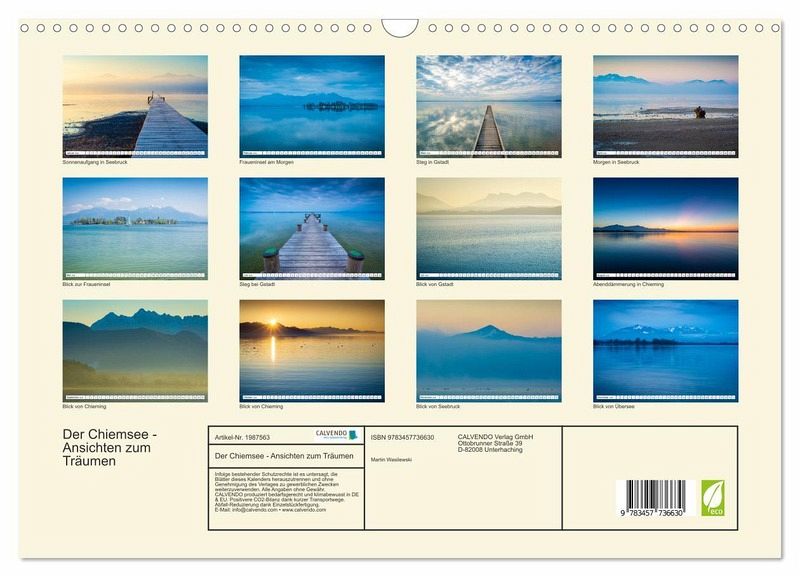 QUALITÄT - Hochwertiger Fotokalender mit 12 wunderschönen Motiven auf lichtbeständigem Bilderdruckpapier, robuste Spiralbindung mit Aufhängebügel.NACHHALTIG - deutliche Abfallreduzierung durch bedarfsgerechte Einzelstückfertigung, umweltfreundliches FSC-zertifiziertes Papier, Produktion in Deutschland, klimabewusste Logistik.PERFEKTES GESCHENK - Kalender für Freunde und Familie, für Kinder und Erwachsene, jung und alt, zu Weihnachten, Geburtstag oder zwischendurch.VIELFALT - Bildkalender in verschiedenen Formaten, z.B. DIN A5, DIN A4, DIN A3 sowie DIN A2. Ob Naturmotiv, Gemälde oder Fotos, ideal für ein persönliches Wohlfühlambiente.Eine Reise um den Chiemsee in malerischen Bildern von Autor(in): Martin Wasilewski