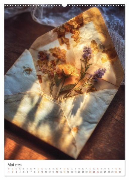 Ein Hauch Vergangenheit. Ein Herz voller Geschichten. Dieser Kalender fängt ein, was Zeit nicht auslöschen kann. Die Wärme alter Briefe, den Zauber vergilbter Seiten, das Licht auf getrockneten Blüten, die Melancholie einer alten Kamera. Jeder Monat wird zu einem kleinen Schatz. Zart, träumerisch und voller Erinnerungsduft. Für Menschen, die Schönheit in Stille finden. Die Worte fühlen, bevor sie lesen. Und die wissen, das Erinnerung die zärtlichste Form des Festhaltens ist. Alle hier gezeigten Bilder wurden mit Sorgfalt, Liebe und mit Hilfe einer KI generiert. Abschließend werden sie mit Bildbearbeitungsprogrammen überarbeitet und in den Kalender eingefügt.