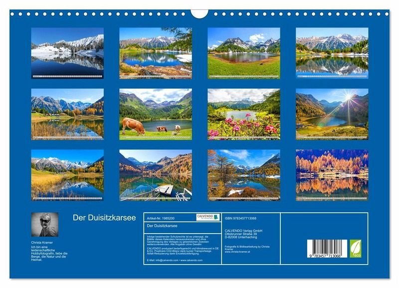 QUALITÄT - Hochwertiger Fotokalender mit 12 wunderschönen Motiven auf lichtbeständigem Bilderdruckpapier, robuste Spiralbindung mit Aufhängebügel.NACHHALTIG - deutliche Abfallreduzierung durch bedarfsgerechte Einzelstückfertigung, umweltfreundliches FSC-zertifiziertes Papier, Produktion in Deutschland, klimabewusste Logistik.PERFEKTES GESCHENK - Kalender für Freunde und Familie, für Kinder und Erwachsene, jung und alt, zu Weihnachten, Geburtstag oder zwischendurch.VIELFALT - Bildkalender in verschiedenen Formaten, z.B. DIN A5, DIN A4, DIN A3 sowie DIN A2. Ob Naturmotiv, Gemälde oder Fotos, ideal für ein persönliches Wohlfühlambiente.Impressionen vom Duisitzkarsee in Rohrmoos Obertal Schladming von Autor(in): Christa Kramer