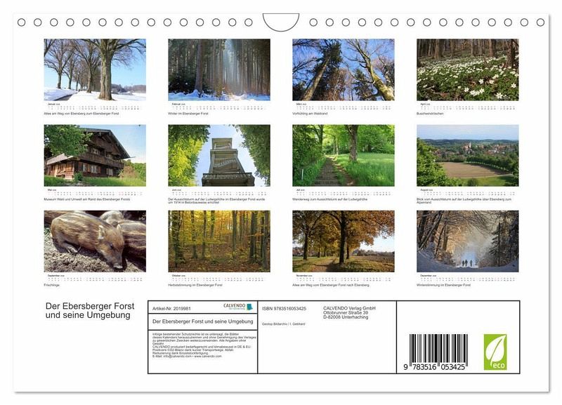 QUALITÄT - Hochwertiger Fotokalender mit 12 wunderschönen Motiven auf lichtbeständigem Bilderdruckpapier, robuste Spiralbindung mit Aufhängebügel.NACHHALTIG - deutliche Abfallreduzierung durch bedarfsgerechte Einzelstückfertigung, umweltfreundliches FSC-zertifiziertes Papier, Produktion in Deutschland, klimabewusste Logistik.PERFEKTES GESCHENK - Kalender für Freunde und Familie, für Kinder und Erwachsene, jung und alt, zu Weihnachten, Geburtstag oder zwischendurch.VIELFALT - Bildkalender in verschiedenen Formaten, z.B. DIN A5, DIN A4, DIN A3 sowie DIN A2. Ob Naturmotiv, Gemälde oder Fotos, ideal für ein persönliches Wohlfühlambiente.Der Ebersberger Forst und seine Umgebung im Wechsel der Jahreszeiten von Autor(in): Geotop Bildarchiv