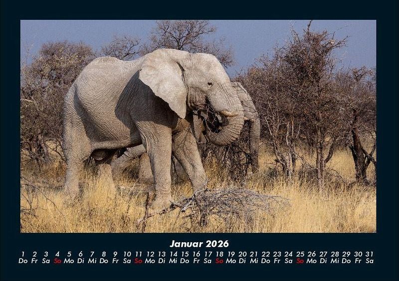 Der Elefantenkalender 2026 Motivkalender DIN A4 Vero-Kalender erhalten Sie mit Motiven aus den verschiedensten Themenbereichen wie Natur, Blumen und Landschaft, Tierwelt, Architektur, Reise und Urlaub, Technik, Automobil und Eisenbahn, Emotionen, Sport und Musik. Gedruckt werden die Monats-Kalender aus dem Vero Verlag auf hochwertigem Kalenderbogen in Premium-Qualität und verschiedenen Größen. Die Vielfältigkeit der Motive unserer Foto-Kalender ist dank der Zusammenarbeit mit kreativen Fotografen möglich.