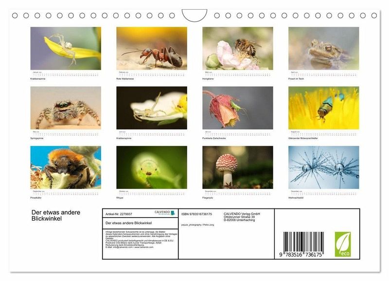 QUALITÄT - Hochwertiger Fotokalender mit 12 wunderschönen Motiven auf lichtbeständigem Bilderdruckpapier, robuste Spiralbindung mit Aufhängebügel.NACHHALTIG - deutliche Abfallreduzierung durch bedarfsgerechte Einzelstückfertigung, umweltfreundliches FSC-zertifiziertes Papier, Produktion in Deutschland, klimabewusste Logistik.PERFEKTES GESCHENK - Kalender für Freunde und Familie, für Kinder und Erwachsene, jung und alt, zu Weihnachten, Geburtstag oder zwischendurch.VIELFALT - Bildkalender in verschiedenen Formaten, z.B. DIN A5, DIN A4, DIN A3 sowie DIN A2. Ob Naturmotiv, Gemälde oder Fotos, ideal für ein persönliches Wohlfühlambiente.Ein faszinierender Blick auf die Natur! von Autor(in): Petra Jung