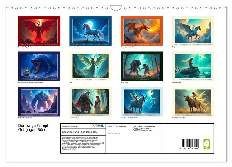 QUALITÄT - Hochwertiger Fotokalender mit 12 wunderschönen Motiven auf lichtbeständigem Bilderdruckpapier, robuste Spiralbindung mit Aufhängebügel.NACHHALTIG - deutliche Abfallreduzierung durch bedarfsgerechte Einzelstückfertigung, umweltfreundliches FSC-zertifiziertes Papier, Produktion in Deutschland, klimabewusste Logistik.PERFEKTES GESCHENK - Kalender für Freunde und Familie, für Kinder und Erwachsene, jung und alt, zu Weihnachten, Geburtstag oder zwischendurch.VIELFALT - Bildkalender in verschiedenen Formaten, z.B. DIN A5, DIN A4, DIN A3 sowie DIN A2. Ob Naturmotiv, Gemälde oder Fotos, ideal für ein persönliches Wohlfühlambiente.Fabelwesen alter Märchen und Legenden von Autor(in): Claudia Kleemann