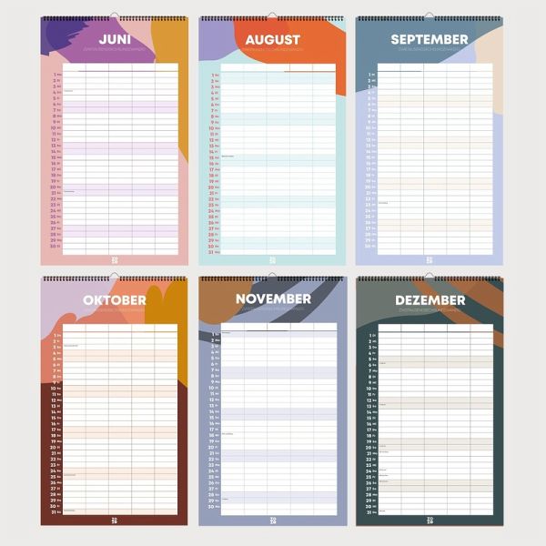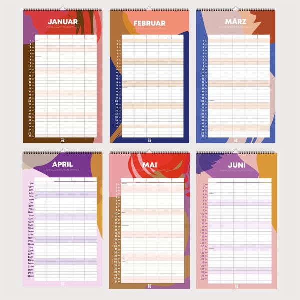 Besonders hervorzuheben ist die moderne, dopaminfarbene Farbgebung - fröhliche, belebende Farben, die nicht nur gute Laune verbreiten, sondern sich auch harmonisch in jeden Einrichtungsstil einfügen. So wird der Kalender das ganze Jahr über zum stilvollen Hingucker an der Wand - ein echtes Highlight für Papeterie-Liebhaber!