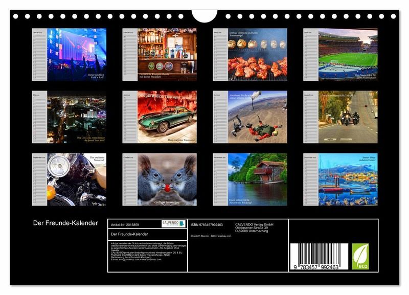QUALITÄT - Hochwertiger Fotokalender mit 12 wunderschönen Motiven auf lichtbeständigem Bilderdruckpapier, robuste Spiralbindung mit Aufhängebügel.NACHHALTIG - deutliche Abfallreduzierung durch bedarfsgerechte Einzelstückfertigung, umweltfreundliches FSC-zertifiziertes Papier, Produktion in Deutschland, klimabewusste Logistik.PERFEKTES GESCHENK - Kalender für Freunde und Familie, für Kinder und Erwachsene, jung und alt, zu Weihnachten, Geburtstag oder zwischendurch.VIELFALT - Bildkalender in verschiedenen Formaten, z.B. DIN A5, DIN A4, DIN A3 sowie DIN A2. Ob Naturmotiv, Gemälde oder Fotos, ideal für ein persönliches Wohlfühlambiente.Das Geschenk für den guten Freund! von Autor(in): Elisabeth Stanzer