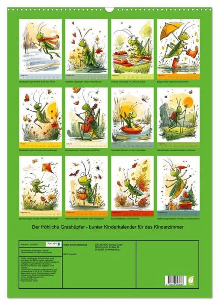 QUALITÄT - Hochwertiger Fotokalender mit 12 wunderschönen Motiven auf lichtbeständigem Bilderdruckpapier, robuste Spiralbindung mit Aufhängebügel.NACHHALTIG - deutliche Abfallreduzierung durch bedarfsgerechte Einzelstückfertigung, umweltfreundliches FSC-zertifiziertes Papier, Produktion in Deutschland, klimabewusste Logistik.PERFEKTES GESCHENK - Kalender für Freunde und Familie, für Kinder und Erwachsene, jung und alt, zu Weihnachten, Geburtstag oder zwischendurch.VIELFALT - Bildkalender in verschiedenen Formaten, z.B. DIN A5, DIN A4, DIN A3 sowie DIN A2. Ob Naturmotiv, Gemälde oder Fotos, ideal für ein persönliches Wohlfühlambiente.Fröhlicher Grashüpfer-Kalender für Kinder: Kinderkalender mit grünen Heuschrecken. Perfekt fürs Kinderzimmer, als Naturkalender für Kindergarten, Grundschule oder Vorschule. Bunt, lehrreich und ein tolles Geschenk. von Autor(in): Michael Bihlmayer