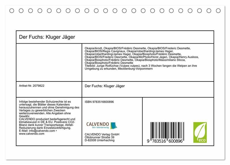 QUALITÄT - Hochwertiger Fotokalender mit 12 wunderschönen Motiven auf lichtbeständigem Bilderdruckpapier, robuste Spiralbindung.NACHHALTIG - deutliche Abfallreduzierung durch bedarfsgerechte Einzelstückfertigung, umweltfreundliches FSC-zertifiziertes Papier, Produktion in Deutschland, klimabewusste Logistik.PERFEKTES GESCHENK - Kalender für Freunde und Familie, für Kinder und Erwachsene, jung und alt, zu Weihnachten, Geburtstag oder zwischendurch.VIELFALT - Bildkalender in verschiedenen Formaten, z.B. DIN A5, DIN A4, DIN A3 sowie DIN A2. Ob Naturmotiv, Gemälde oder Fotos, ideal für ein persönliches Wohlfühlambiente.Beeindruckende Naturfotografien aus dem Leben der Füchse von Autor(in): CALVENDO Verlag