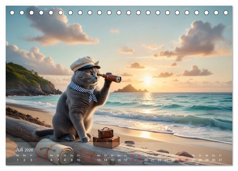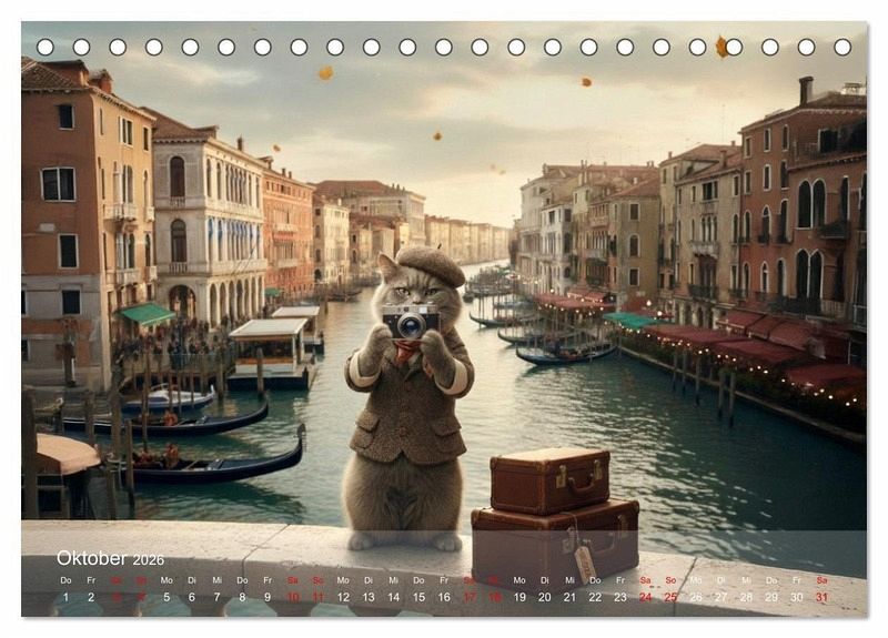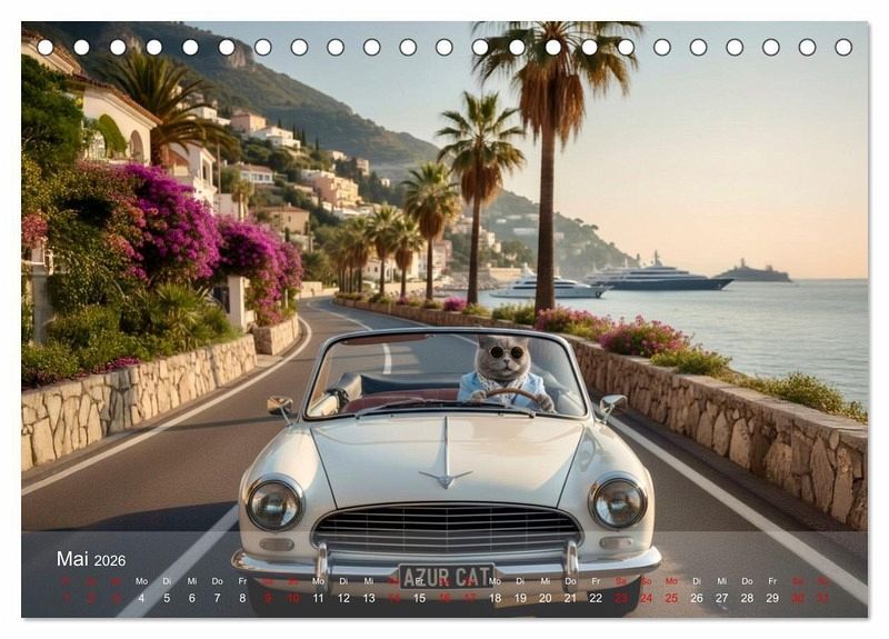 Ein KI-Kalender mit Liebe zum Detail! Der Kalender zeigt Bilder von einem Kartäuser, der von der Schweiz nach Frankreich und Italien reist. Eine Inspirationsquelle für die nächste Reise soll er sein und ein täglicher Beweis, dass Katzen die Welt erobern können.