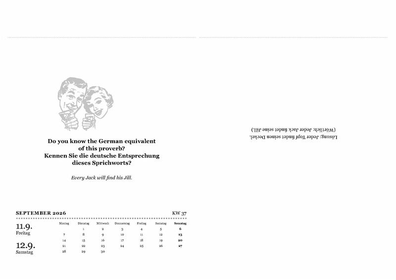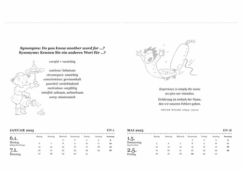 Der mühelose SprachtrainerJeden Tag nur ein paar MinutenWitze, Limmericks, Grammatik, Wortschatz, Alltagssprache - amüsant vermitteltEnglisch lernen mit SpaßfaktorMonatskalendarium auf jedem Blatt