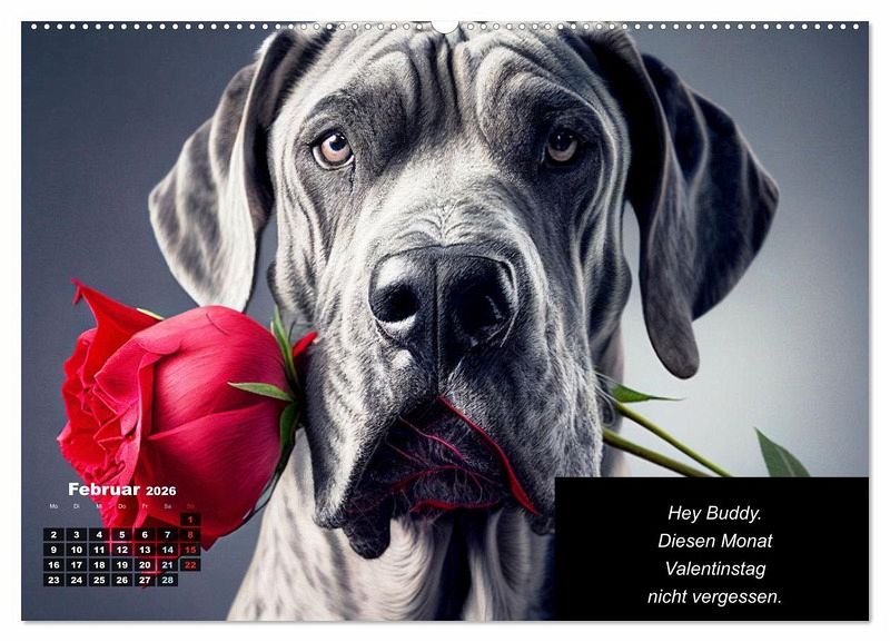Ob als Geschenk für einen Doggen-Fan oder als Schmuckstück für die eigene Wand, dieser Kalender bringt Monat für Monat Freude und ein Lächeln ins Gesicht.