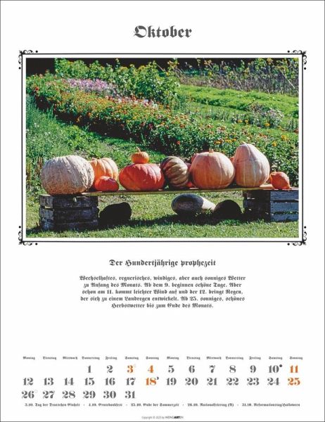- Wettervorhersagen mit Tradition: Der Hundertjährige Kalender als Jahres-Wandkalender 2026- Monat für Monat das Beste aus über 300 Jahren bewährter Bauernregeln in einem zeitlosen Kalender-Klassiker- Wunderschöner Fotokalender mit 12 Bildern: Zauberhafte Hofidylle im Wandel der Jahreszeiten, eingefangen vom erfahrenen Naturfotografen Wolf-Dietmar Unterweger- Bauernhof-Stimmung für jede Wand: Kalender im mittelgroßen Format 30x39 cm- Vielfalt, die begeistert: Naturkalender von Weingarten im Athesia Kalenderverlag