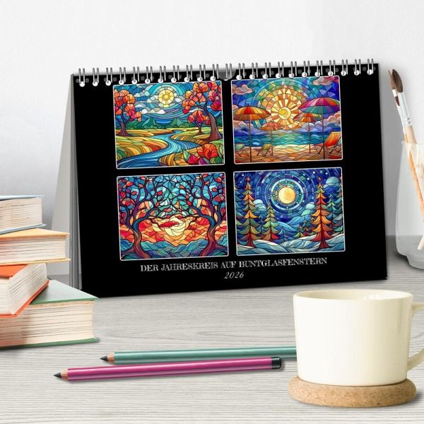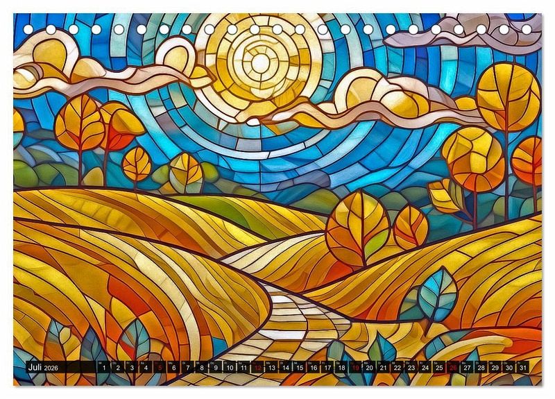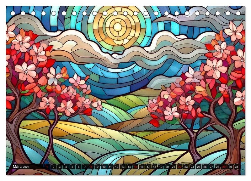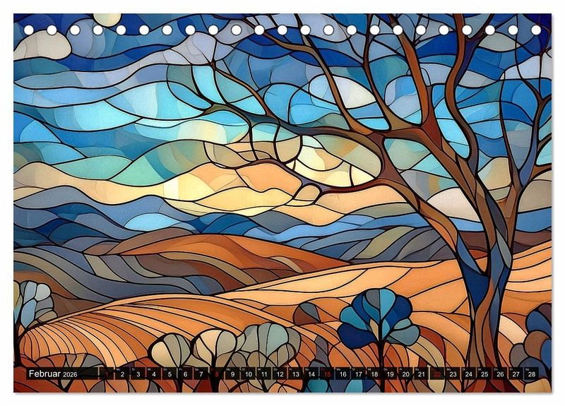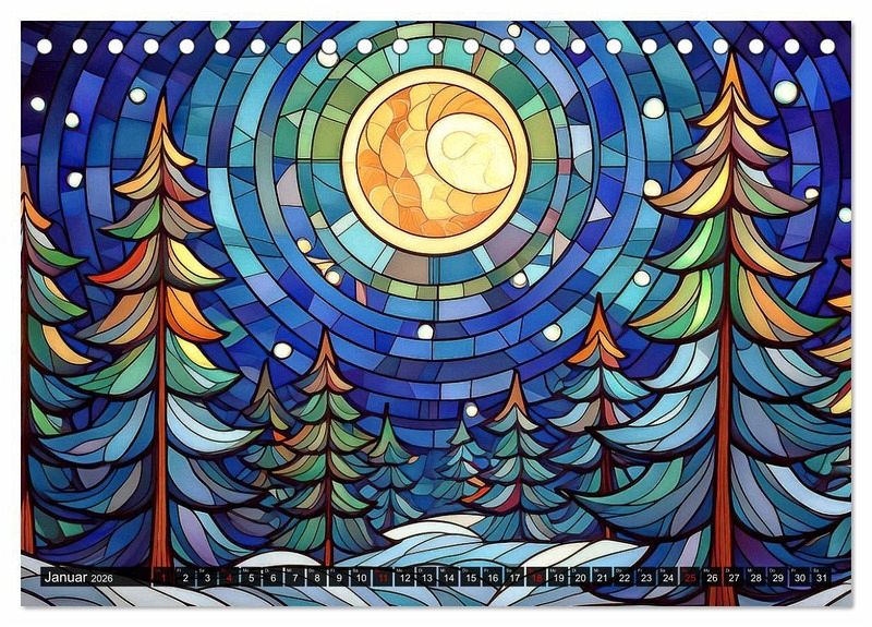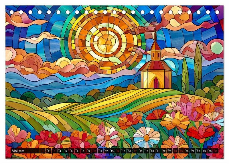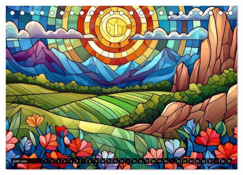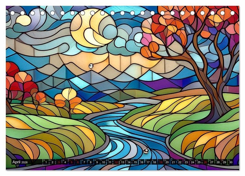 Die Natur, dargestellt als Kunstwerk und von künstlicher Intelligenz geschaffen: das finden Sie im vorliegenden Kalender! Jeder Monat wird durch jahreszeitspezifische Landschaften auf kunstvoll gestalteten Buntglasfenstern zum Leben erweckt - faszinierende Werke, die mithilfe modernster KI-Technologie geschaffen wurden und dennoch den Charme alter Kirchenfenster in profanen Landschaftsbildern anklingen lassen. Lassen Sie sich von lebendigen Farben und eindrucksvollen Szenarien verzaubern, die gleichzeitig die Kreativität und Innovation der digitalen Kunst widerspiegeln. Dieser Kalender ist nicht nur ein praktischer Monatsüberblick, sondern auch ein inspirierendes Kunstwerk für Ihr Zuhause.