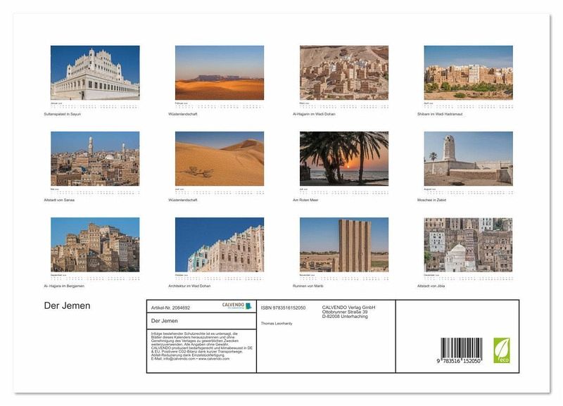 QUALITÄT - Hochwertiger Fotokalender mit 12 wunderschönen Motiven auf lichtbeständigem Bilderdruckpapier, robuste Spiralbindung mit Aufhängebügel.NACHHALTIG - deutliche Abfallreduzierung durch bedarfsgerechte Einzelstückfertigung, umweltfreundliches FSC-zertifiziertes Papier, Produktion in Deutschland, klimabewusste Logistik.PERFEKTES GESCHENK - Kalender für Freunde und Familie, für Kinder und Erwachsene, jung und alt, zu Weihnachten, Geburtstag oder zwischendurch.VIELFALT - Bildkalender in verschiedenen Formaten, z.B. DIN A5, DIN A4, DIN A3 sowie DIN A2. Ob Naturmotiv, Gemälde oder Fotos, ideal für ein persönliches Wohlfühlambiente.Architektur und Landschaft des Jemens von Autor(in): Thomas Leonhardy