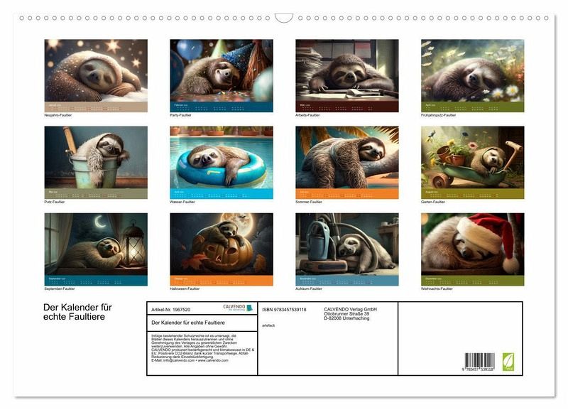 QUALITÄT - Hochwertiger Fotokalender mit 12 wunderschönen Motiven auf lichtbeständigem Bilderdruckpapier, robuste Spiralbindung mit Aufhängebügel.NACHHALTIG - deutliche Abfallreduzierung durch bedarfsgerechte Einzelstückfertigung, umweltfreundliches FSC-zertifiziertes Papier, Produktion in Deutschland, klimabewusste Logistik.PERFEKTES GESCHENK - Kalender für Freunde und Familie, für Kinder und Erwachsene, jung und alt, zu Weihnachten, Geburtstag oder zwischendurch.VIELFALT - Bildkalender in verschiedenen Formaten, z.B. DIN A5, DIN A4, DIN A3 sowie DIN A2. Ob Naturmotiv, Gemälde oder Fotos, ideal für ein persönliches Wohlfühlambiente.Der Kalender für echte Faultiere von Autor(in): Michael Kuelbel