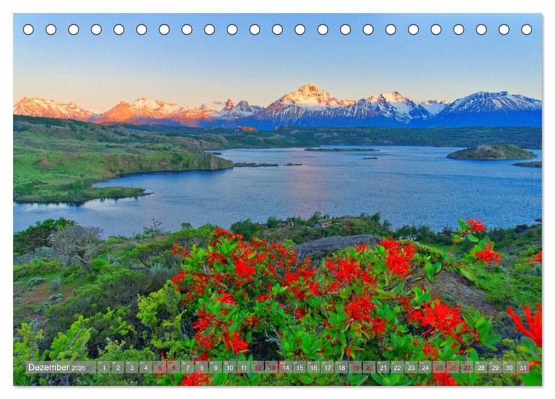Chile übt seit jeher eine besondere Faszination aus. Obwohl das Land weit entfernt an der südwestlichen Küste Südamerikas liegt, kommt es in diesem Kalender plötzlich ganz nah. Chile wird grob in fünf verschiedene Regionen unterteilt, und der 'Kleine Süden' bildet das grüne Herzstück. Hier rauschen Flüsse, ruhen Bergseen und gedeiht temperierter Regenwald. Lassen Sie sich von der unberührten Schönheit dieser Landschaft verzaubern.