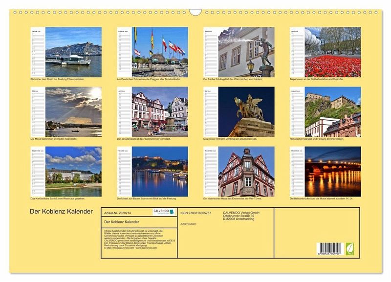 QUALITÄT - Hochwertiger Fotokalender mit 12 wunderschönen Motiven auf lichtbeständigem Bilderdruckpapier, robuste Spiralbindung mit Aufhängebügel.NACHHALTIG - deutliche Abfallreduzierung durch bedarfsgerechte Einzelstückfertigung, umweltfreundliches FSC-zertifiziertes Papier, Produktion in Deutschland, klimabewusste Logistik.PERFEKTES GESCHENK - Kalender für Freunde und Familie, für Kinder und Erwachsene, jung und alt, zu Weihnachten, Geburtstag oder zwischendurch.VIELFALT - Bildkalender in verschiedenen Formaten, z.B. DIN A5, DIN A4, DIN A3 sowie DIN A2. Ob Naturmotiv, Gemälde oder Fotos, ideal für ein persönliches Wohlfühlambiente.Stadt mit Flair an Rhein und Mosel von Autor(in): Maximilian Fuchs