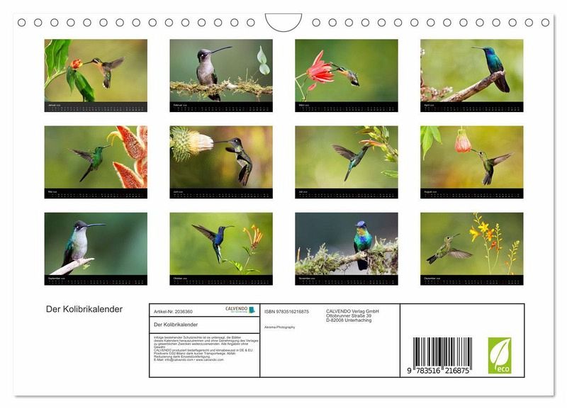 QUALITÄT - Hochwertiger Fotokalender mit 12 wunderschönen Motiven auf lichtbeständigem Bilderdruckpapier, robuste Spiralbindung mit Aufhängebügel.NACHHALTIG - deutliche Abfallreduzierung durch bedarfsgerechte Einzelstückfertigung, umweltfreundliches FSC-zertifiziertes Papier, Produktion in Deutschland, klimabewusste Logistik.PERFEKTES GESCHENK - Kalender für Freunde und Familie, für Kinder und Erwachsene, jung und alt, zu Weihnachten, Geburtstag oder zwischendurch.VIELFALT - Bildkalender in verschiedenen Formaten, z.B. DIN A5, DIN A4, DIN A3 sowie DIN A2. Ob Naturmotiv, Gemälde oder Fotos, ideal für ein persönliches Wohlfühlambiente.Atemberaubende Aufnahmen von Kolibris aus Costa Rica von Autor(in): Andreas Kretschmar